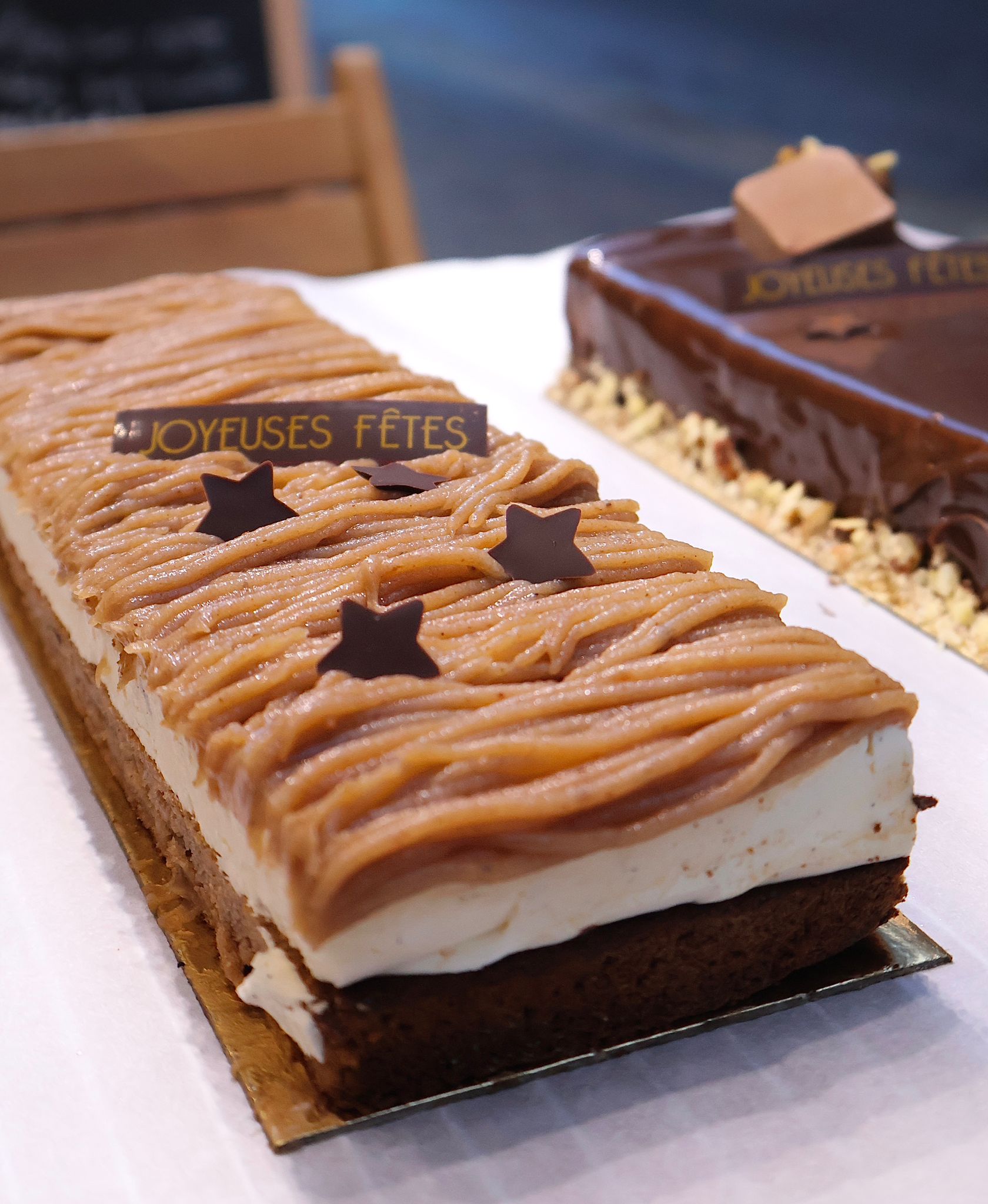 Bûche maison à la Mousse Vanille Bio de Madagascar, moelleux aux marrons, vermicelles de marrons. Voir description pour les formats.